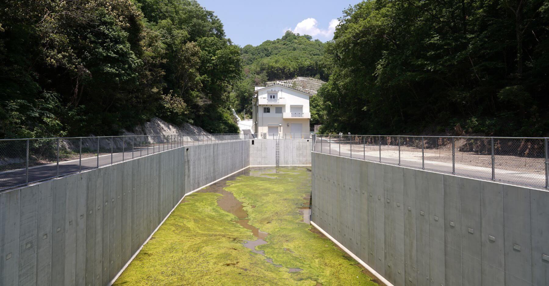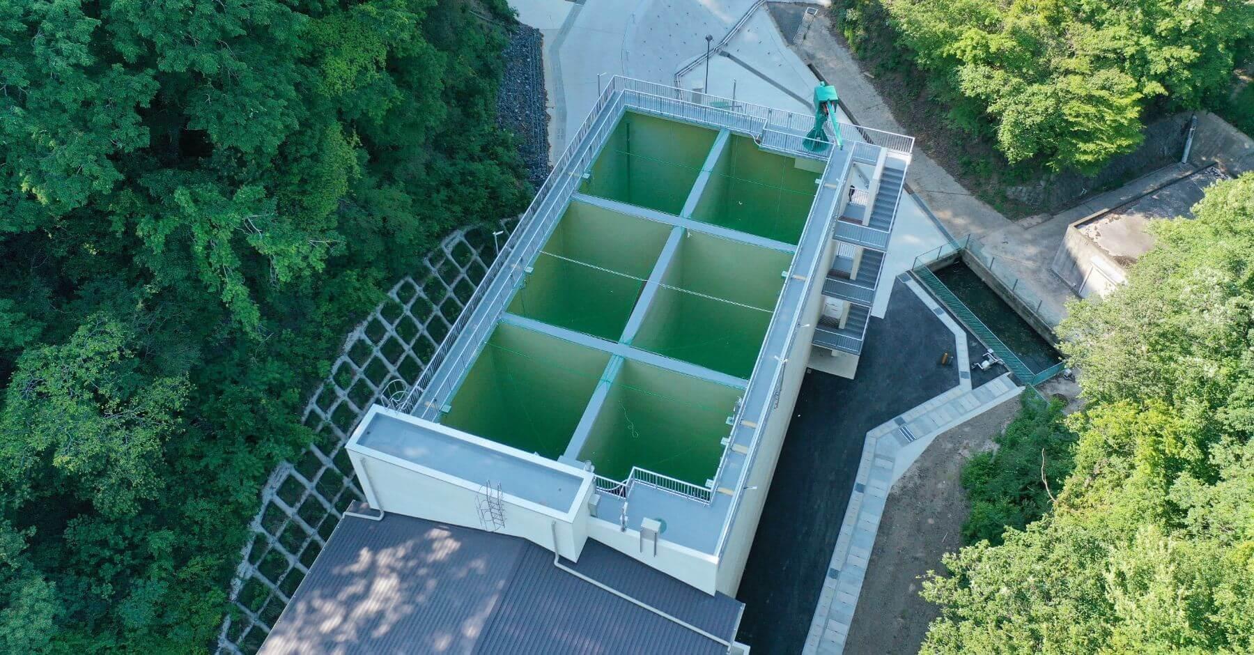 また、雨が埋立処分場内に降雨し出てくる水(浸出水)を安全に河川に放流するために、浸出水処理施設で処理を行っています。